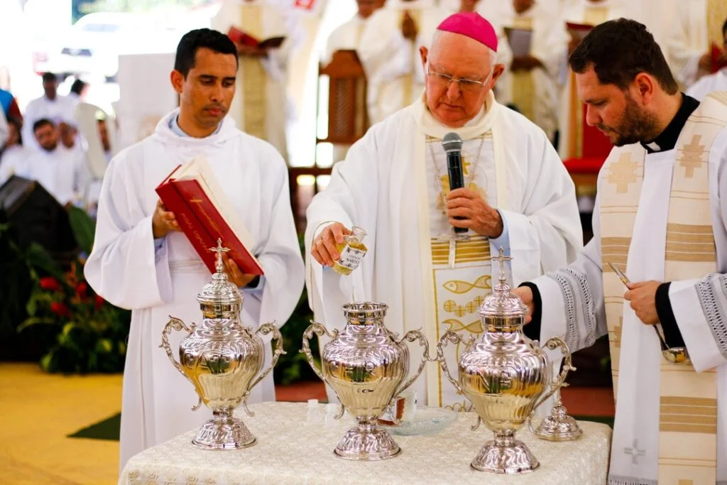 “Celebramos aqui na paróquia São João Batista a Missa da bênção dos óleos, que todos tenhamos uma santa semana santa, uma feliz páscoa. Principalmente quero acolher nesta diocese de Bom Jesus da Lapa, o bispo Dom Rubival, que ele realmente continue sendo aquilo que foi em outros lugares, o Bom Pastor. Que o Bom Jesus da Lapa e Nossa Senhora da Soledade abençoe a você, Dom Rubival, e toda essa diocese de Bom Jesus da Lapa”, finalizou.